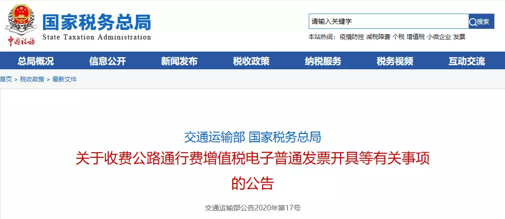 本公告自2020年4月1日起施行。2017年12月25日發(fā)布的《交通運(yùn)輸部國(guó)家稅務(wù)總局關(guān)于收費(fèi)公路通行費(fèi)增值稅電子普通發(fā)票開具等有關(guān)事項(xiàng)的公告》(交通運(yùn)輸部公告2017年第66號(hào))同時(shí)廢止。