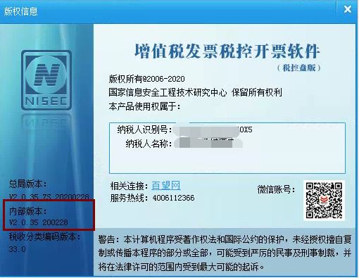 進入開票軟件,點擊【幫助】-【關于】,查看左下角軟件版本更新為 V2.0.35.200228,則說明升級成功。