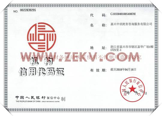 信用代碼 : 人民銀行審核通過獲中國人民銀行頒發機構信用代碼證。