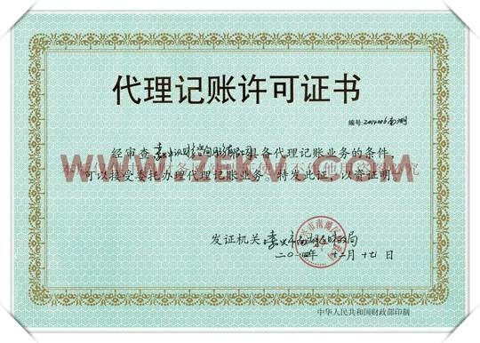 【代理記賬許可證】 |